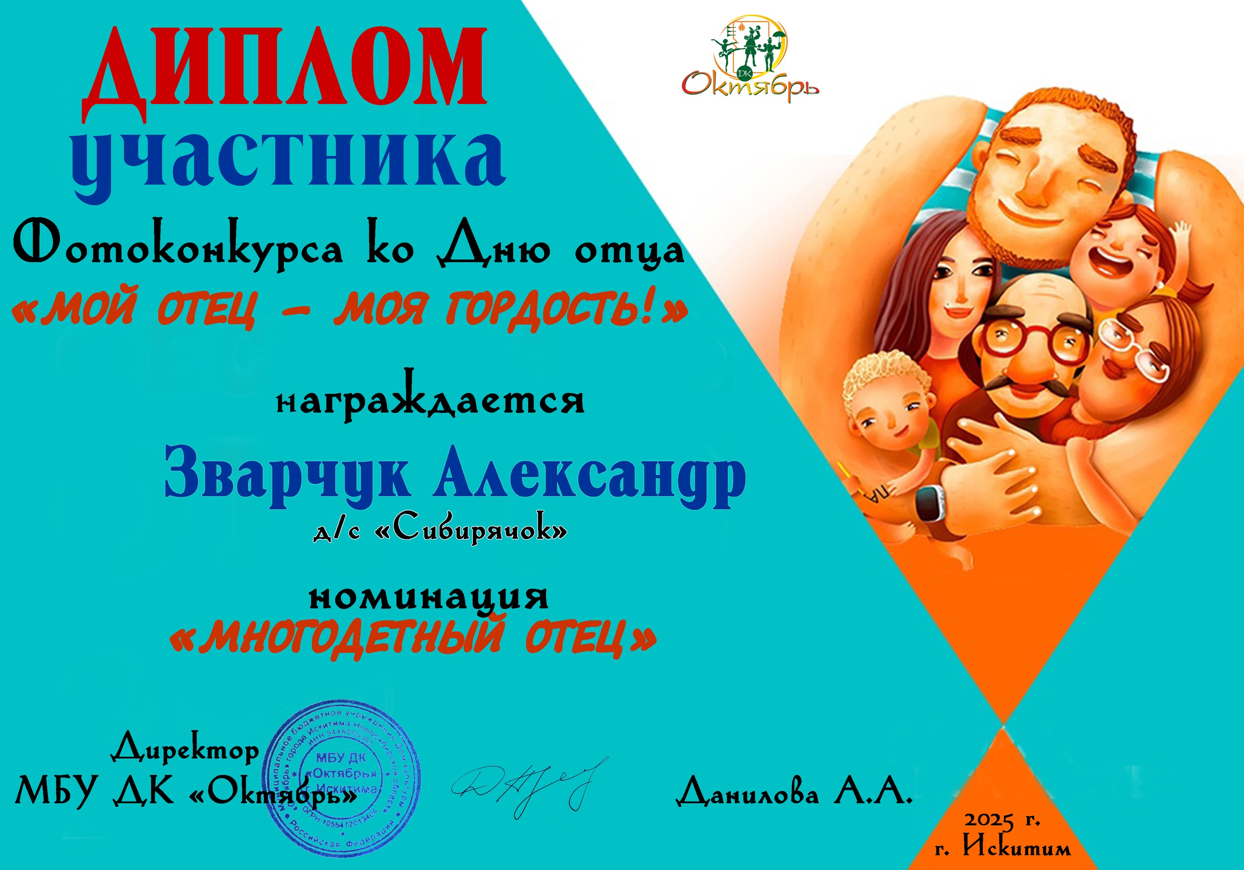 Диплом участника фотоконкурса ко Дню отца